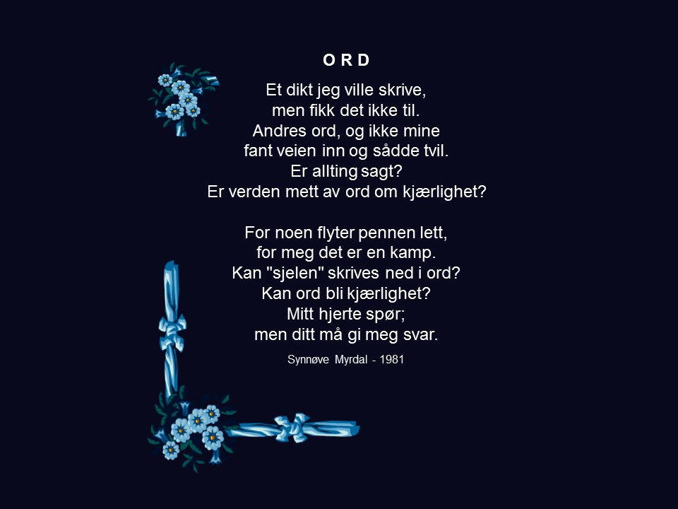 2. Ord juni 4, 2015 av Synnøve Myrdal in Poesi and tagged Poesi Del dette: Klikk for å dele på X(åpnes i en ny fane) X Klikk for å dele på Facebook(åpnes i en ny fane) Facebook Lik Laster inn...