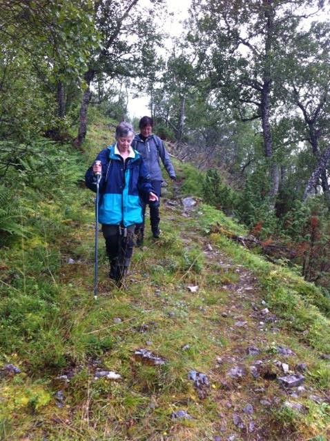 På Norrøna Kafe og pensjonat venta Jenny Huse, leiar og i slekt med oss. Ungeflokken vart lessa inn i buss, og ferda gjekk innover Langfjorden til Vistdalen, til brua over elva Vista, som bukta seg rundt eigedommen.